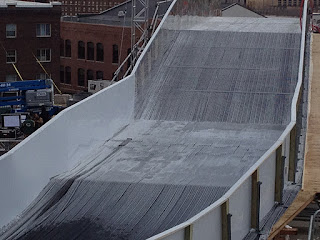 Have you been wondering what on earth is happening at the eastern end of Summit next to the Cathedral? It's not church construction, or light rail, or Winter Carnival prep — it's the first-of-its-kind Red Bull Crashed Ice event!